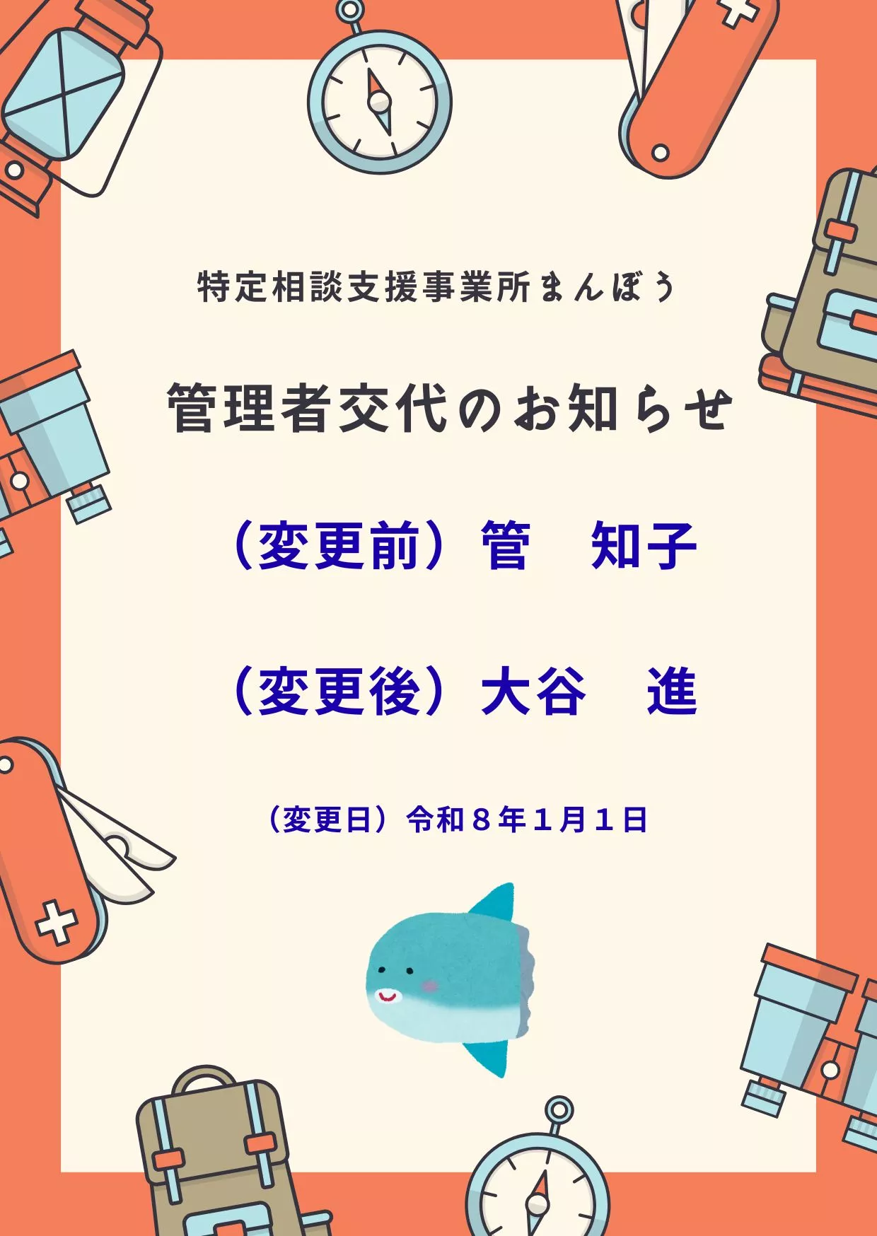 管理者・サービス提供責任者交代のお知らせ